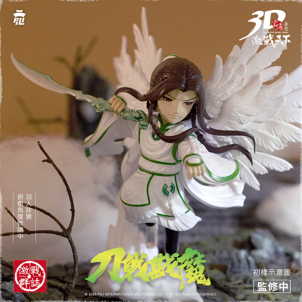 ✦羽人非獍公仔乙隻;配件:神刀天泣(單/雙手皆可持)、雲蹤氣旋地台|羽人非獍角色名片卡、羽人非獍預購限定雙面情境卡