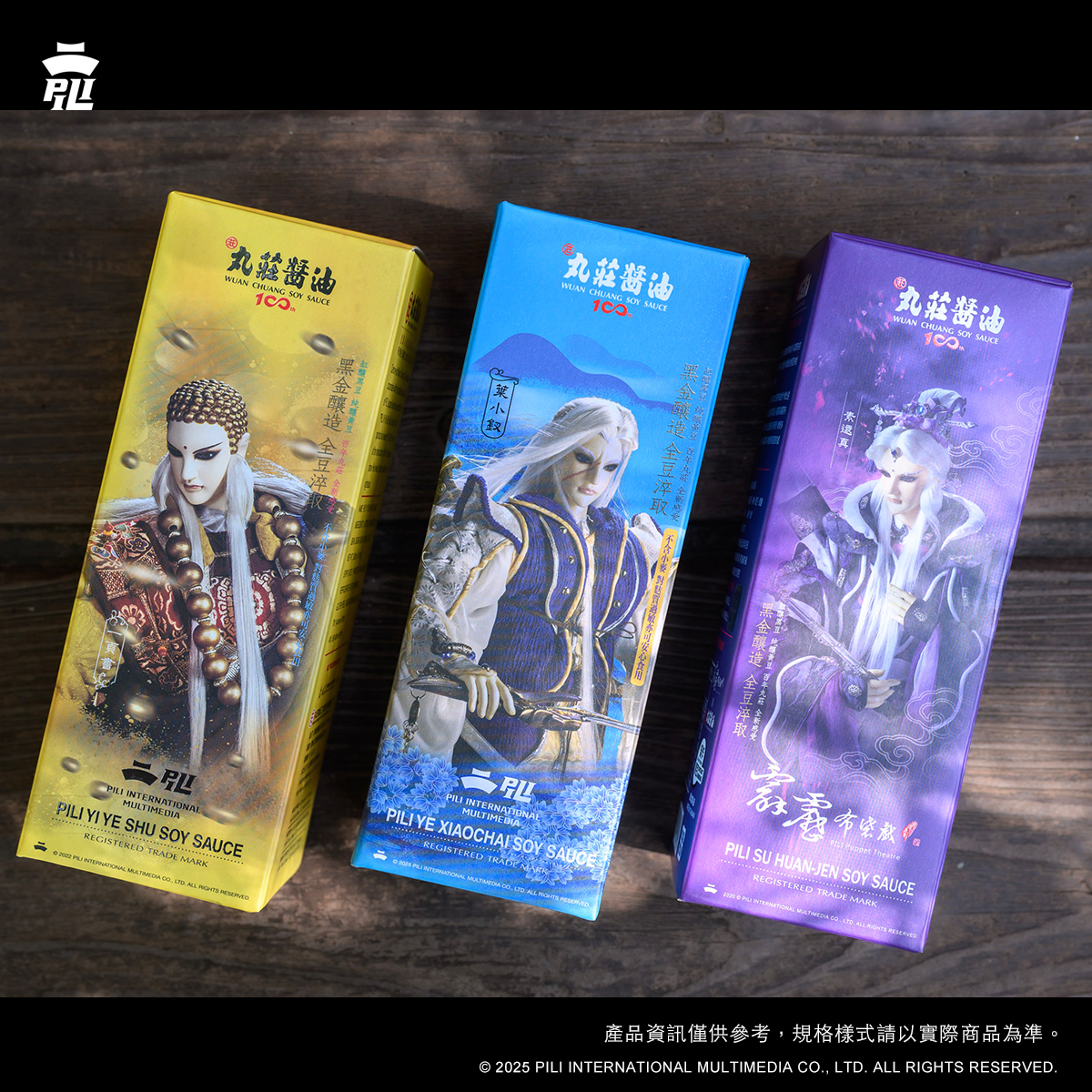 丸莊醬油與霹靂布袋戲旗下素還真、一頁書及葉小釵三大人物推出聯名醬油,