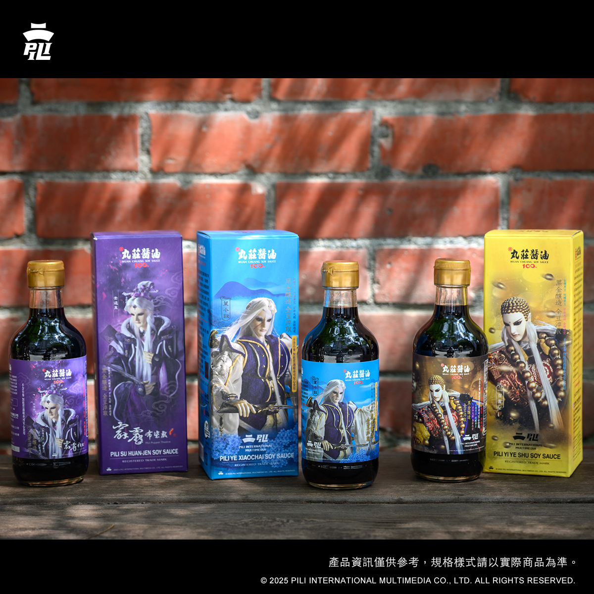 丸莊醬油與霹靂布袋戲旗下素還真、一頁書及葉小釵三大人物推出聯名醬油,