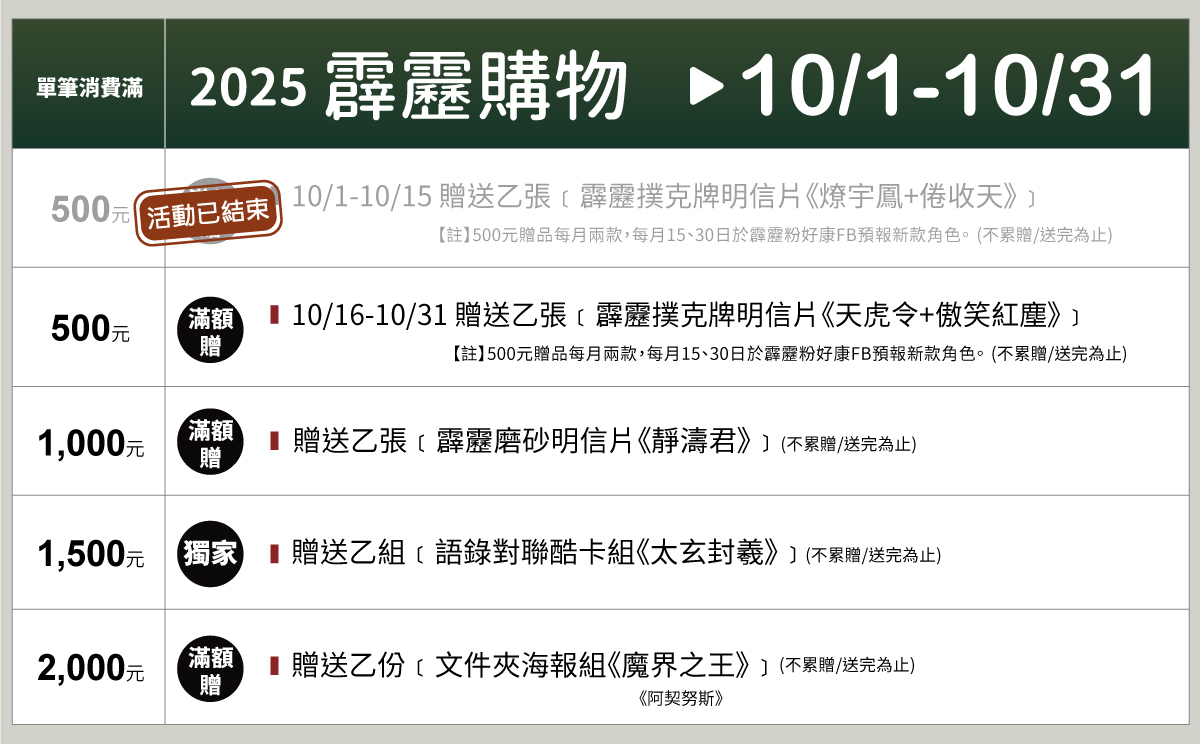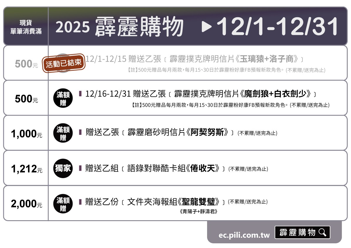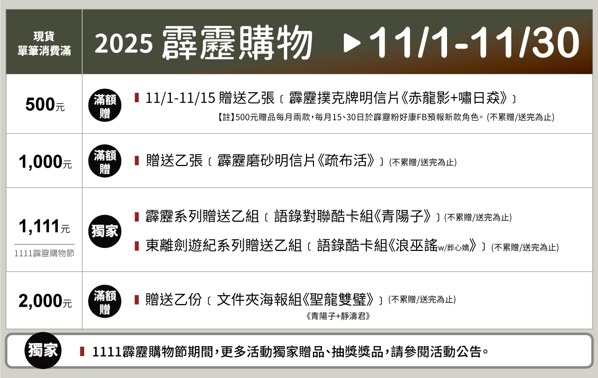 2.贈品內容可參考霹靂粉好康公告,避免錯過最新消息。