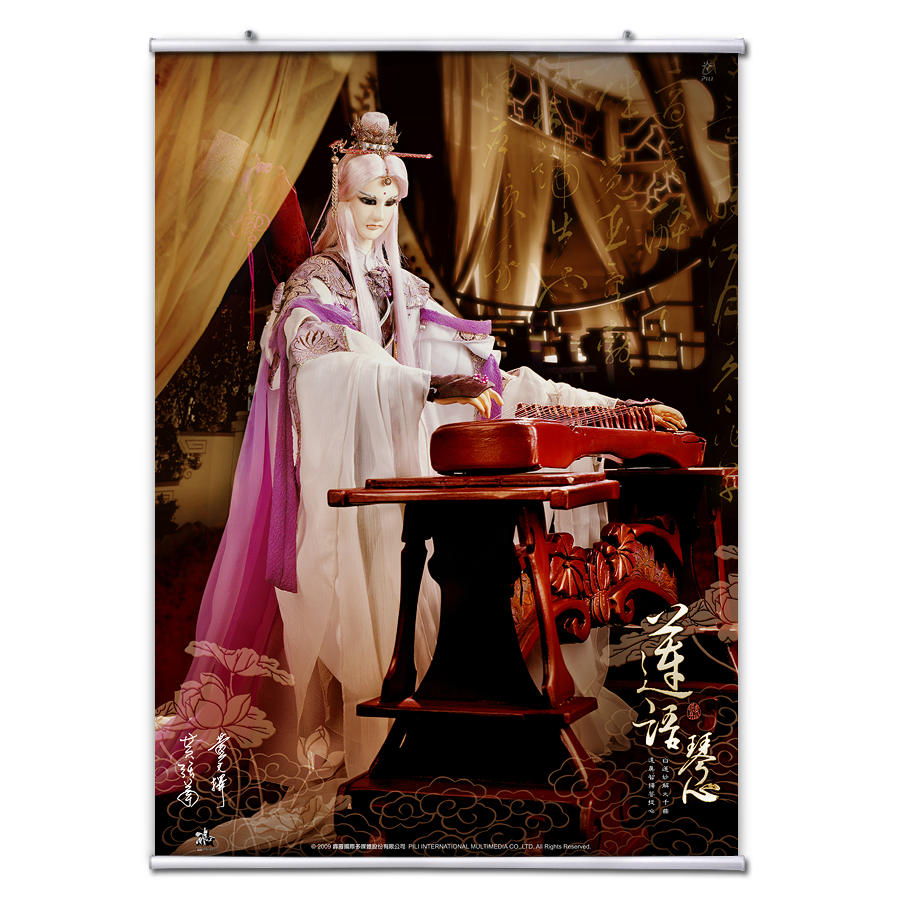 白蓮妙解大千曲,還真智釋菩提心清香白蓮素還真,霹靂首席男主角,中原正道領導者,超塵絕俗、文武雙全的一代神人,心懷救世慈悲心與般若大智慧,以實踐武林和平、天下大同為宏願。※為紀念霹靂會堂堂邁入十五年度,霹靂會與霹靂海報館合作,一同推出特別紀念款天啟素還真海報『蓮語琴心』。