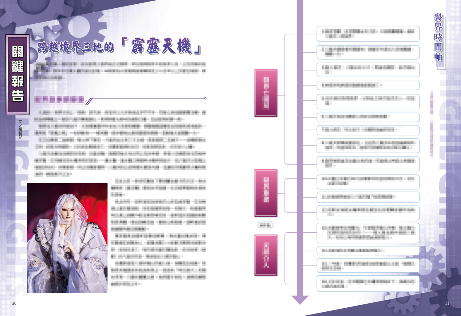 《霹靂天機》的故事進入尾聲,本期封面人物,乃天機系列的終極反派太曦神照,包括太曦神照真身與替身玉冰瑩,本刊深入訪談劇組,延續324期的夯人物單元,帶出更多設計始末……