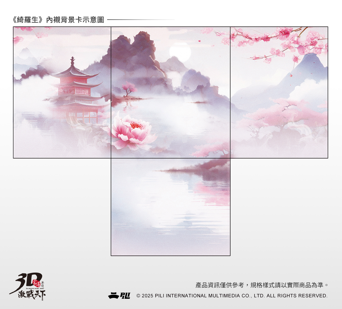 4.綺羅生公仔配件包含:紫氣血月地台、江山豔刀。